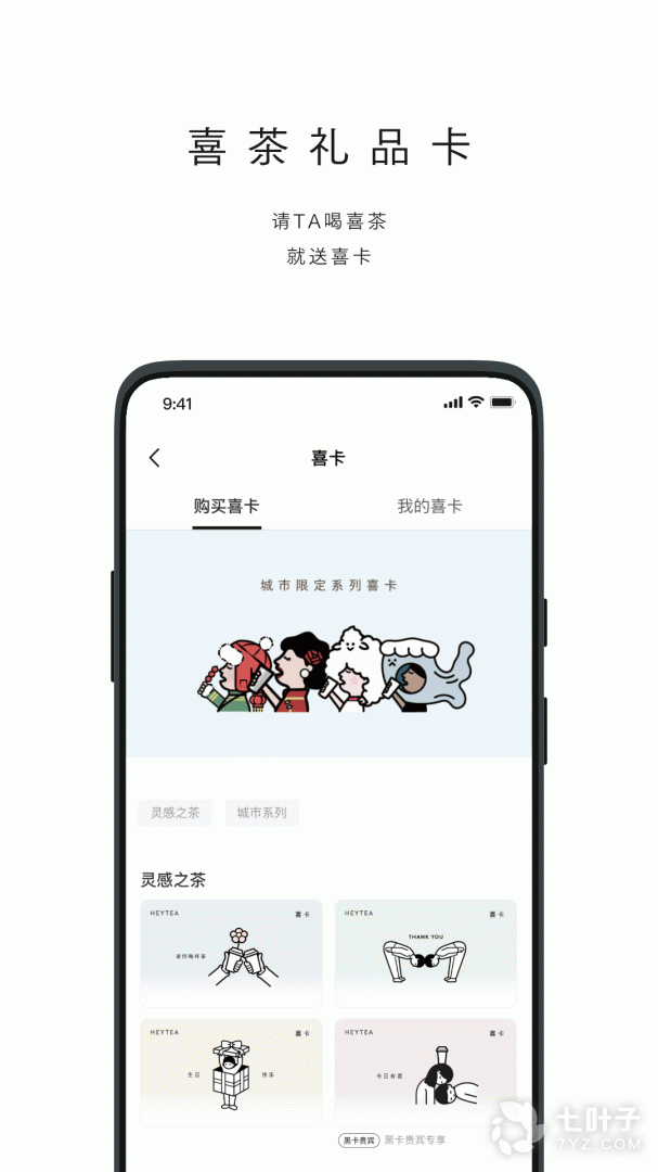 5、请TA喝喜茶,就送阿喜有礼卡.众多创意卡面不定期上新.用一杯喜茶和他(她)sayhey 吧