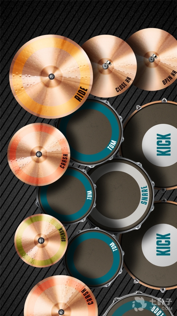 1、内置多套仿真架子鼓可供选择,app会随着用户的敲击而发声,可以用做学习架子鼓的练习