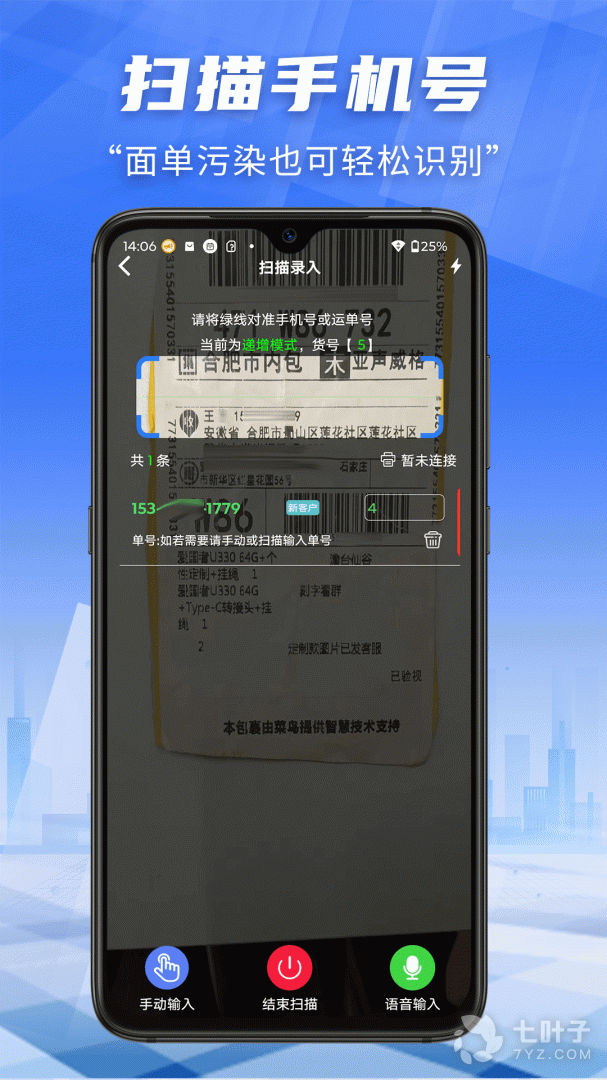 3、快递员小扁担优化快递件手机号码扫描功能,准确率高达100%,大大提高快递员工作效率