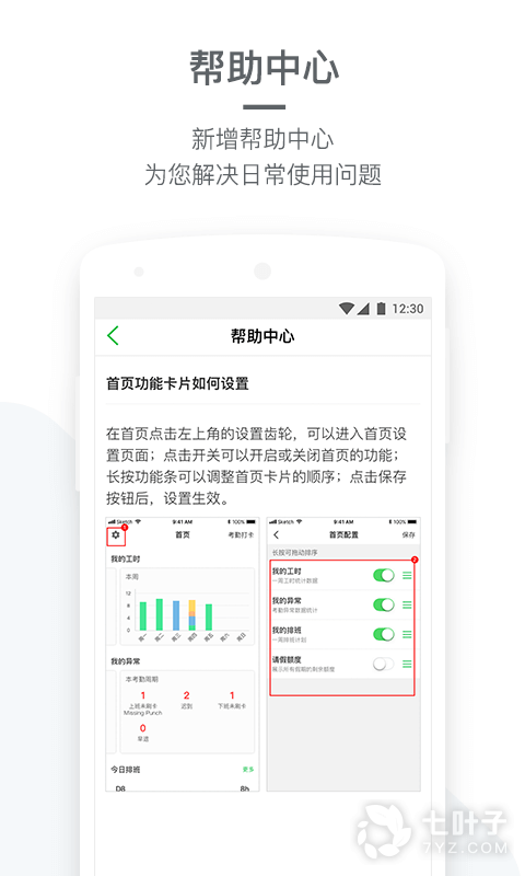 4.迟到、早退、漏打卡等出勤异常实时推送、快速申诉,提前解决问题