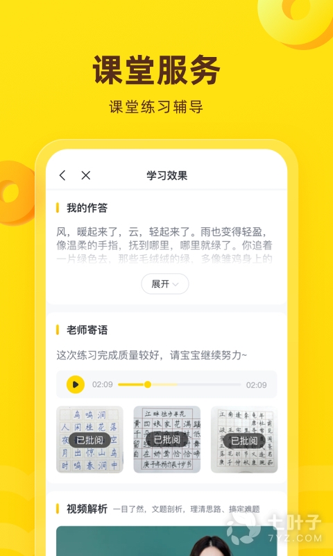 4、老师及时关注孩子动态,课堂练习及时反馈,错题多维度解析,有效帮助学生加深印象;多种学习报告,实时推送,清晰定位学生水平,帮助学生及家长精准分析优势劣势