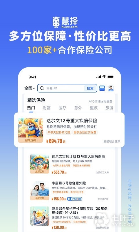 2、慧择保险网帮你购买和选择保险,以及理赔相关服务的软件,慧择保险网为用户精选丰富的保险产品,险种多样,重疾、意外、教育、养老等等,轻松学习保险常识避开套路,专业客服团队全程为你服务,为你规划科学、合理的保险方案