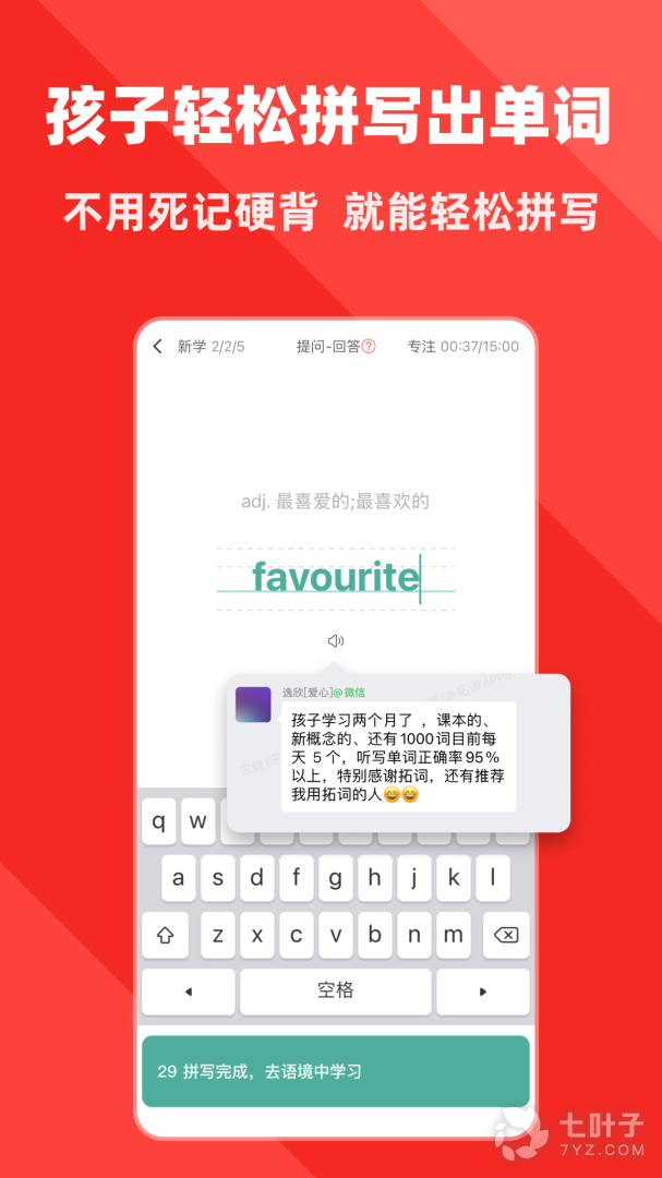 1、经过6年的打磨,拓词的单词新算法真正让你掌握单词而不纠结,不会的单词反复出现。