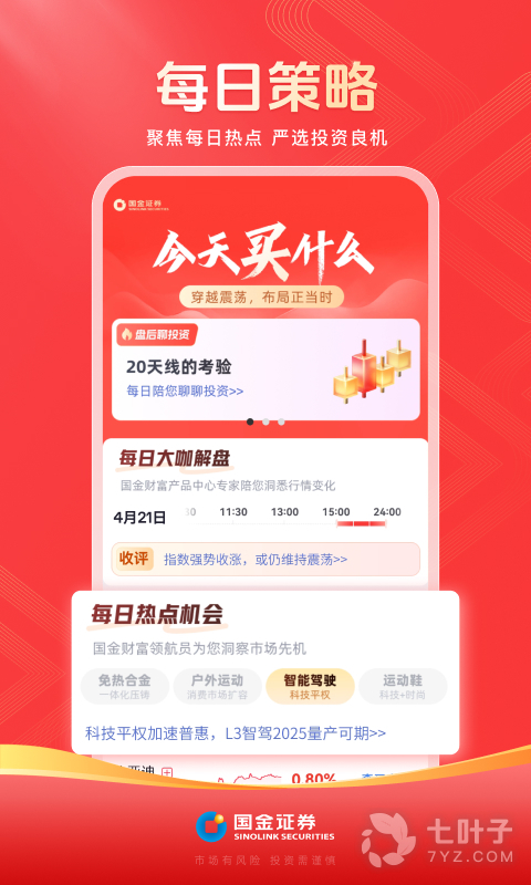 3、国金佣金宝是国金证券股份有限公司旗下面向投资者开发的证券服务软件,这款软件支持7*24小时在线开户,能够为投资者带来及时的财经热点资讯,同时提供专业化的人工投顾服务