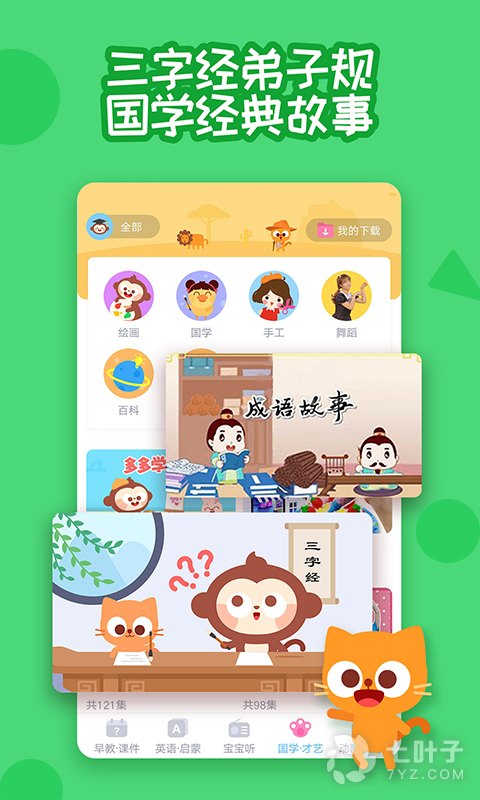 1、精选大量儿童歌曲、故事、古诗词、童谣、国学、绘画等儿童成长必备的内容
