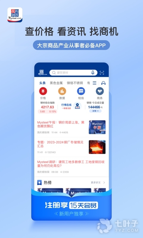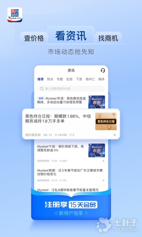我的钢铁app是一款移动钢铁资讯平台,秉承我的钢铁网的特点,以信息服务为主,有行情报价,直观的展现平台资讯服务。致力于为广大用户提供及时准确的钢材价格、现货交易信息、期货行情及分析等服务。让您随时随地查价格、看资讯、找商机。