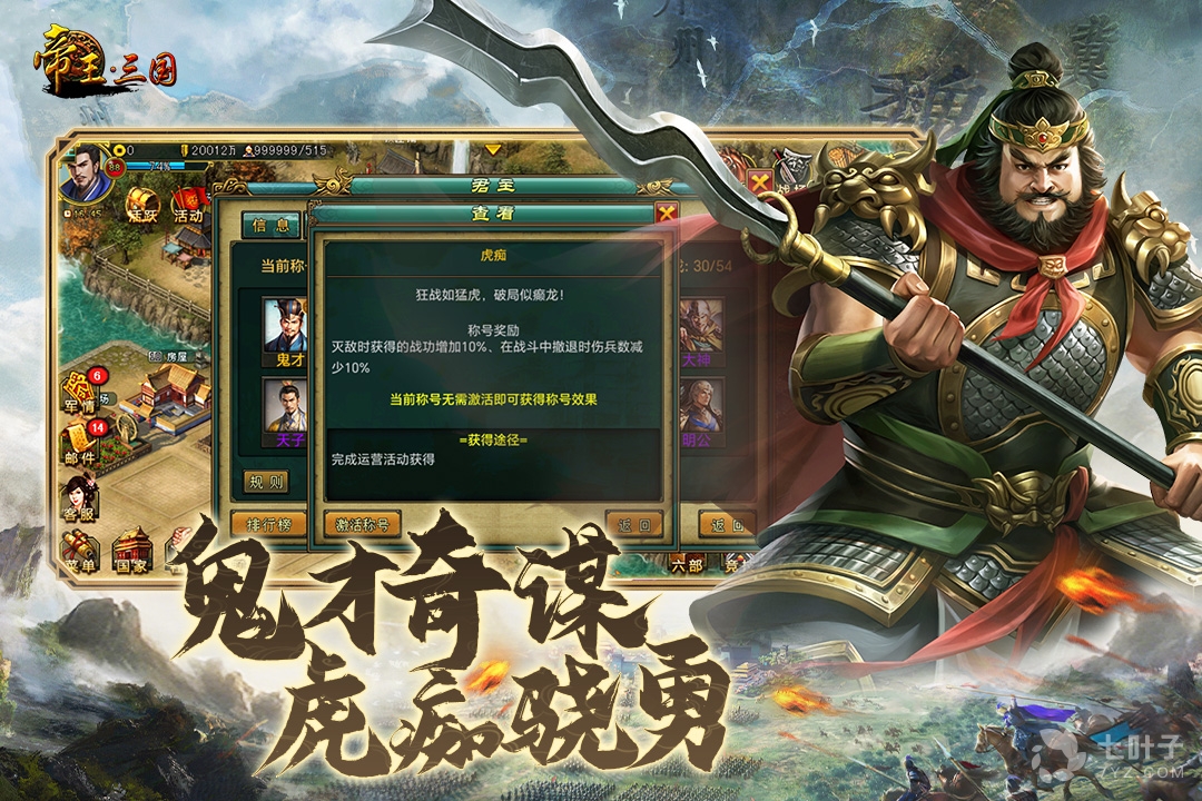 3、增加“虎痴”“鬼才”称号及“作壁上观”成就