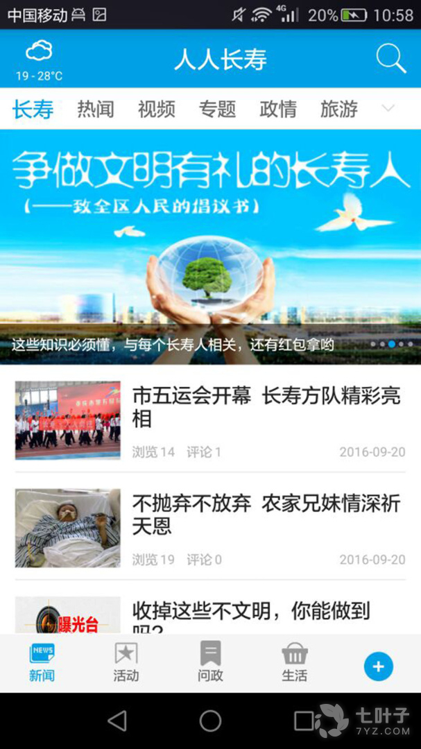 2、该软件为广大用户提供了长寿新闻、长寿视频、长寿旅游、专题播报、政务公开、便民服务、生活服务和周边查询等服务