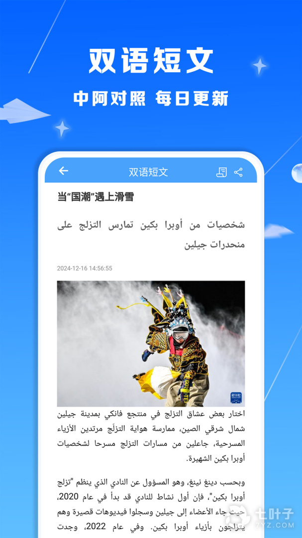 4.“学中文”模式下,双语短文新增了“HSK快捷词条”;