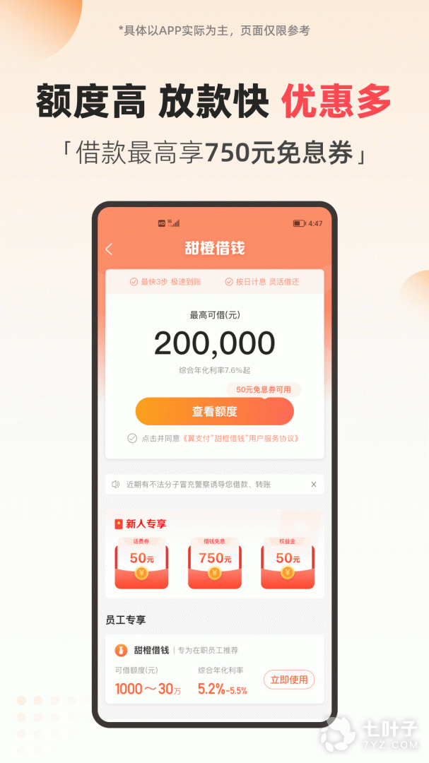 5、甜橙借钱:为用户及小微商户提供互联网小额贷款信息服务