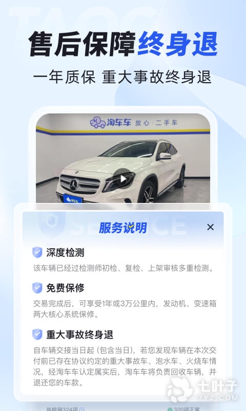 2.帮买服务- 实名认证车顾问协助选车,并提供原厂质保、延长质保服务及14天事故车包退的买车一站式服务体系。