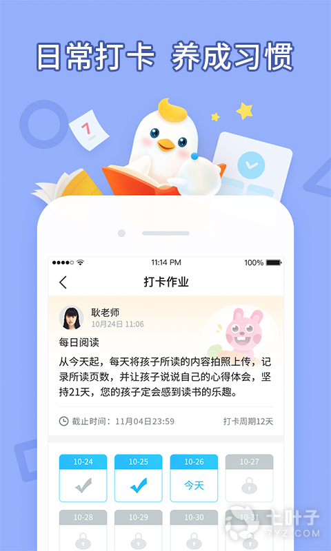 1.打卡任务随时打卡完成任务即可统计出完成时间;