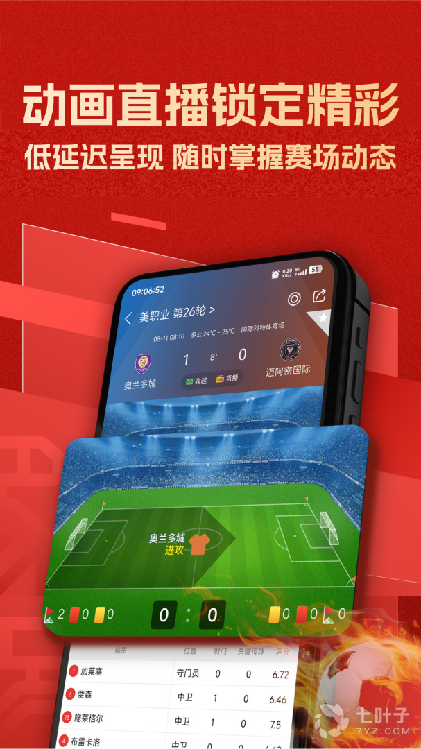 [实时比赛]足球/篮球动画直播,团队日程预览,跟踪比赛并实时接收比赛的动态变化。