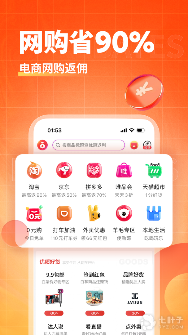 2、购物省钱、分享赚钱。在这里,淘宝天猫拼多多数百万商品,任你挑选,