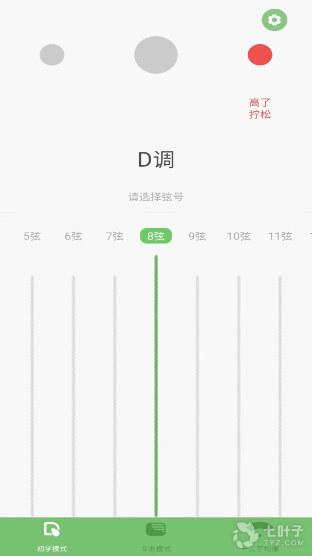 还是你熟悉的界面,G、C、D......等9种调式可选。比初学模式拥有着更高的灵敏度、更小的容错值和更精细的反馈刻度。