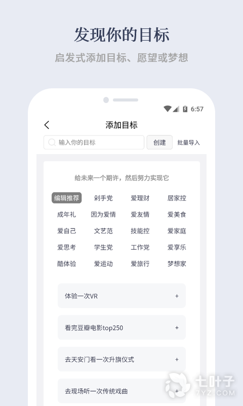 添加自己的一个目标,也可以创建新的目标,通过一种仪式感约束自己,满足自己;