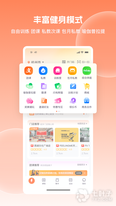 3、团课页面全面更新,可快速约到离你最近门店的可约课程,同时为你匹配更适合你自己的课程。