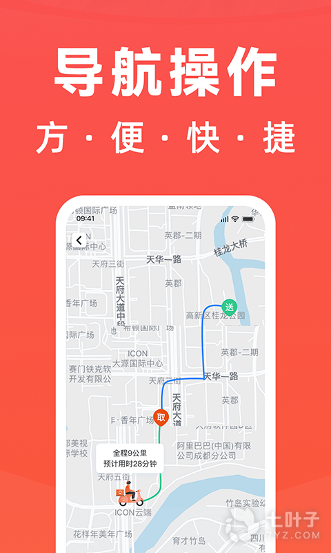 2、骑手岛连接了商家、骑手和客户,三者的位置都会同步在地图上。骑手可以看到清晰的路线规划,跟着导航提示走,不必担心超时的问题。软件的目的就是为了让骑手多接单,多赚取收益
