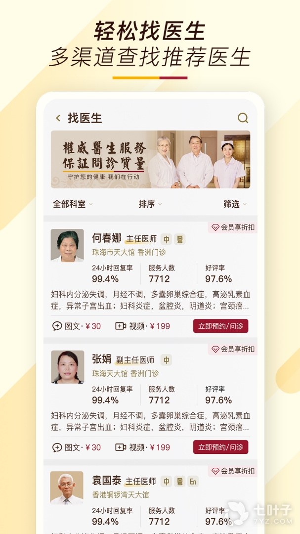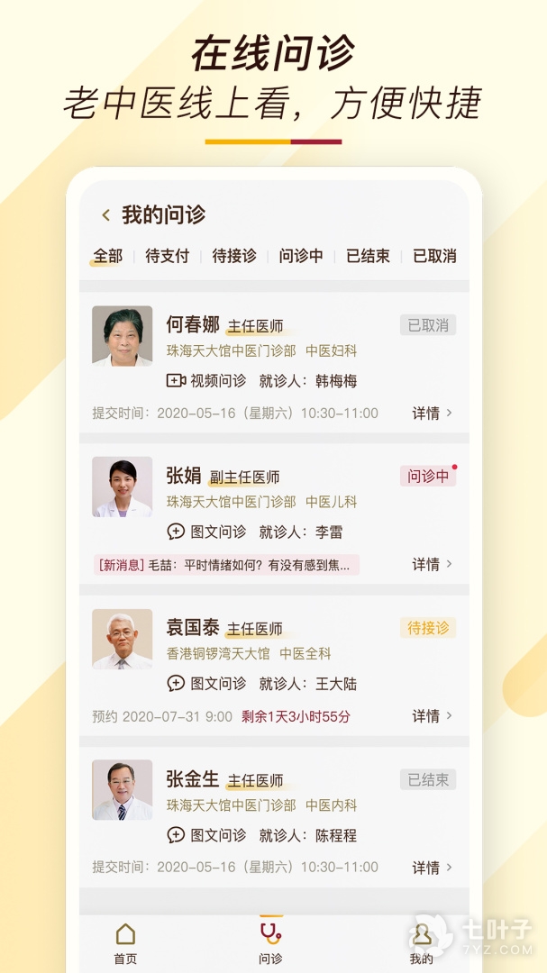 - 找医生:通知多种渠道搜索、寻找你想问诊的医生