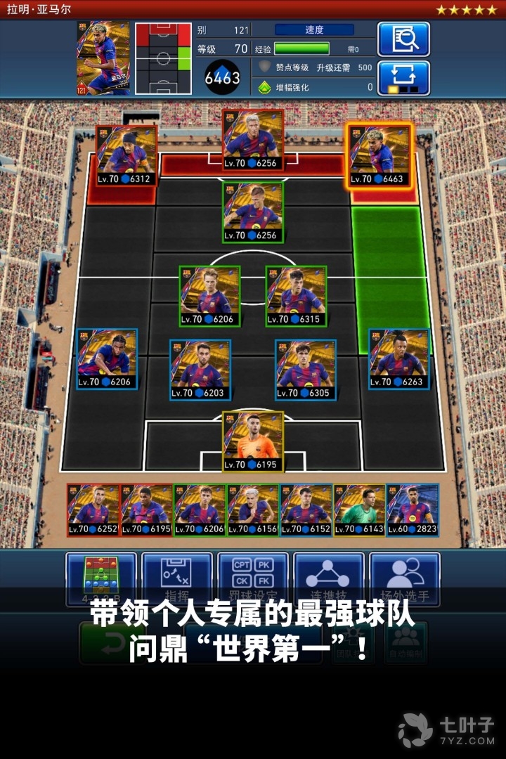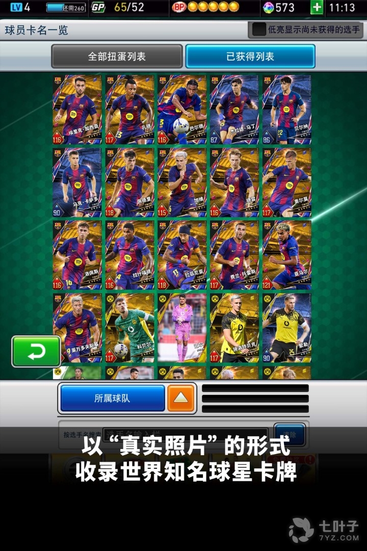 3、在游戏中,您可收集全球著名球员卡牌,他们都拥有者不同的数值属性以及各自的特色球技,你要合理的搭配和培养他们,赢得最终的胜利