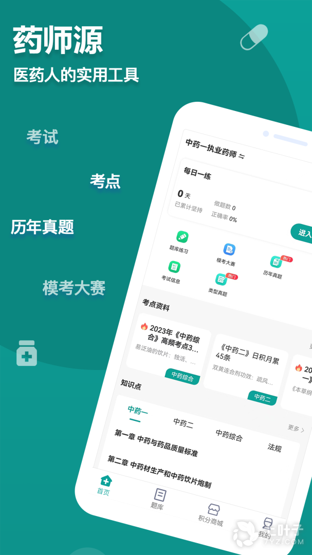 2、药师源是一个为广大想考药师证的朋友们打造的学习软件,大家可以在这里看到很多相关考试的学习题库,让大家能够在线进行学习刷题,能够帮助大家更好的了解相关的考试报名情况,还能够查看各种药品说明书和用药指南等等