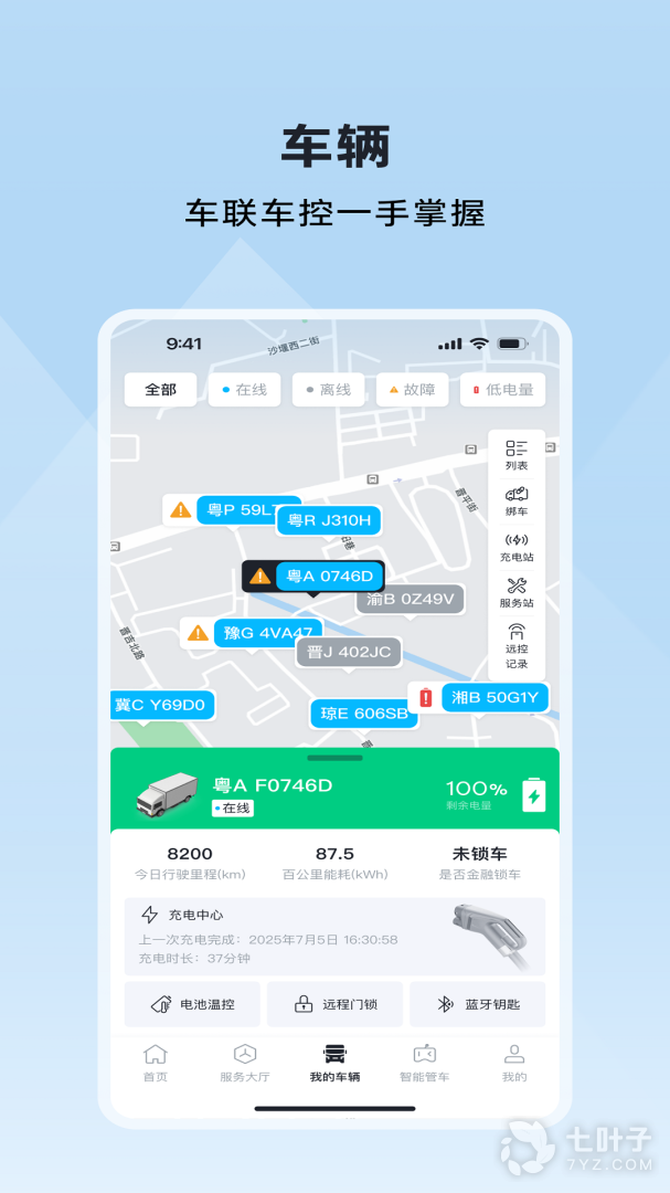 在这里,您可以获取厂家资讯,掌握自己车辆的分布和运营情况,体验故障告警、保养提醒、车队管理等特色功能。