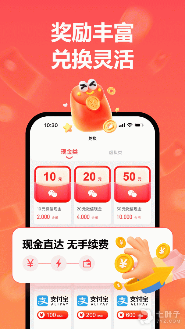 3、邀请好友可以直接拿现金红包哦,并且手机签到天天拿金币哦