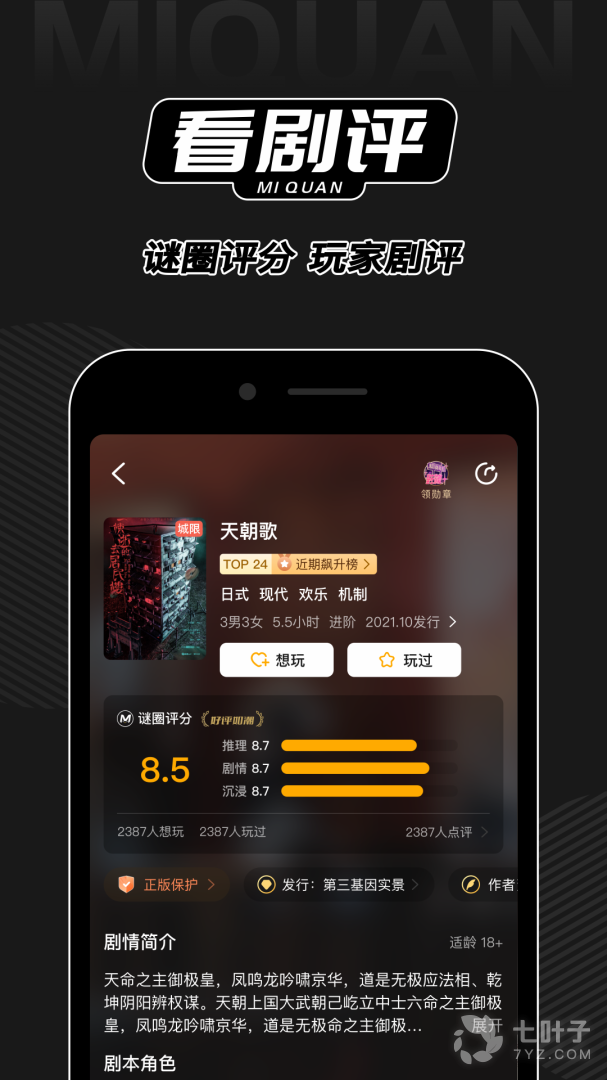 1、谜圈是专注剧本杀的线上社交平台软件,玩家们可以在线参与各种有趣的互动剧本;
