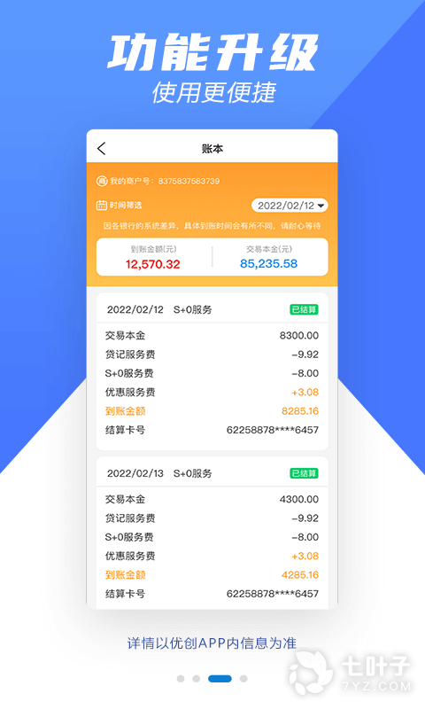 3、这是一个服务平台,在用户上有着限制,通过这个软件,它会和互联网同步沟通,快速的让你可以随时随地的进行各种交易查询,这样如果你有对什么自己的东西怀疑的地方,通过优创详细的查询到这些都是相对来说简单很多的,不单单是查询哦,还有最终端的绑定也是同样可以的,它的功能是你想不到的,非常人性化,你肯定用的上