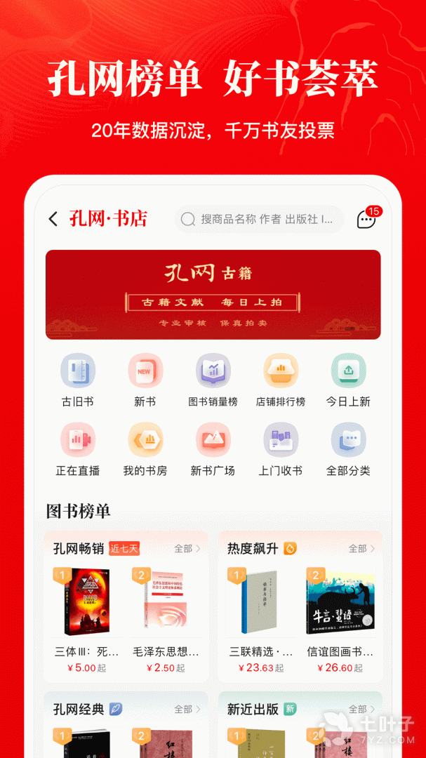孔夫子旧书网,专业的古旧书、艺术品交易平台,一万家书店,八万个书摊,千万种商品在线销售,在线拍卖每日新增万种拍品。从明清古籍、民国期刊、名人信札到最近出版的新书都可以在孔网以合适的价格购得。