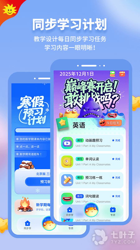 同步学为您涵盖英语、语文、数学多个学科,内容完全同步各地的版本和教学大纲,是贯穿课前预习、课堂辅助、课后复习及练习的一站式系统化的自主学习体系。包含全国小学、初中、高中课题教材90%的题库,自动生成有针对性的课程内容和课后练习,快来刷刷刷吧。
