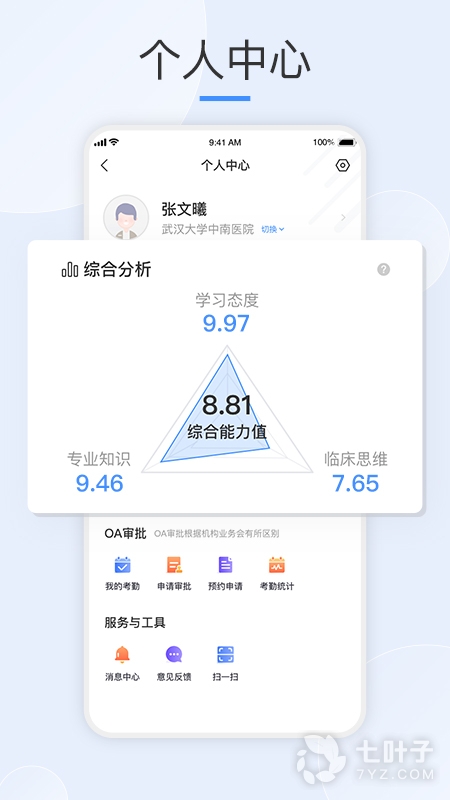 6、支持查看考勤,审批、申请进度实时可查,有详细的视频课程可以学习,还可以在虚拟诊室接诊哦