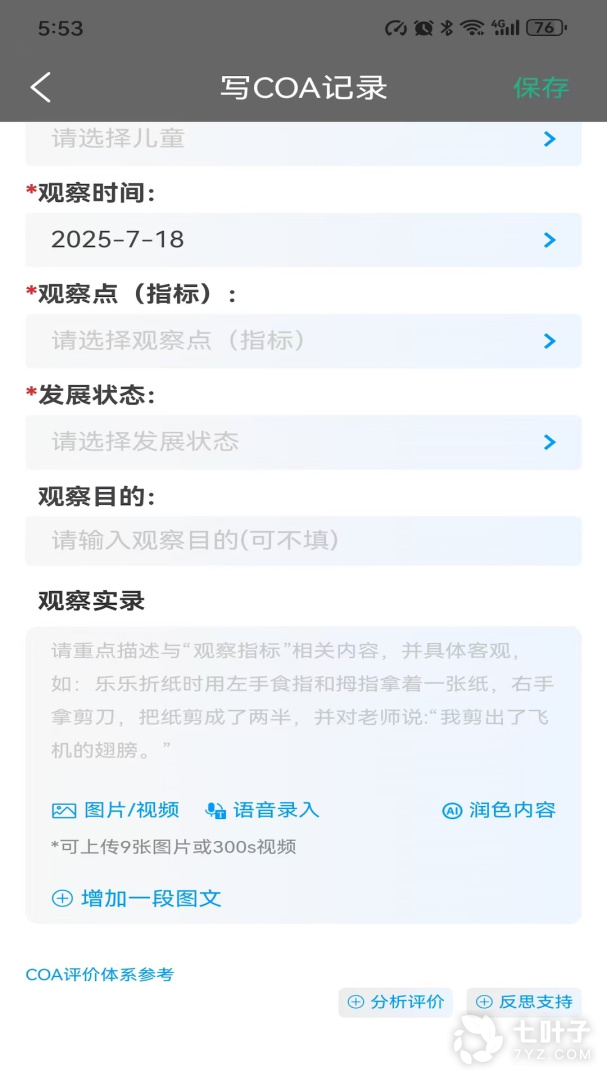 1、新增“园本评估”模块,适配园所自有的教师评估和儿童评估模板,可根据评估内容动态生成报告,以及根据评估内容自动生成分析结果和教学策略,支持转发、下载DOC文档