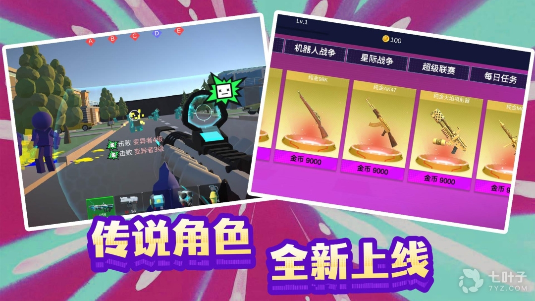 超好玩的像素枪战游戏,游戏里面你将和其他的玩家展开射击对战,快速的在地图当中收集各种武器装备并且寻找有利的地点将你的对手全部击杀掉,游戏当中非常的考验玩家的射击技巧