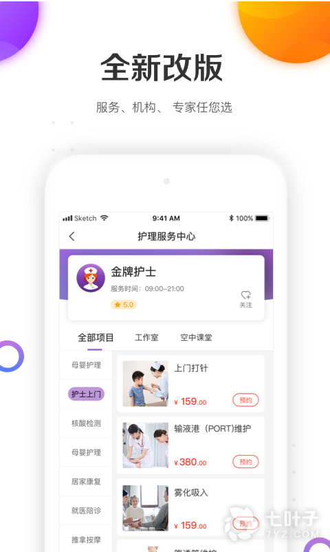 1、金牌护士以专业护士为核心,为用户提供护理服务;