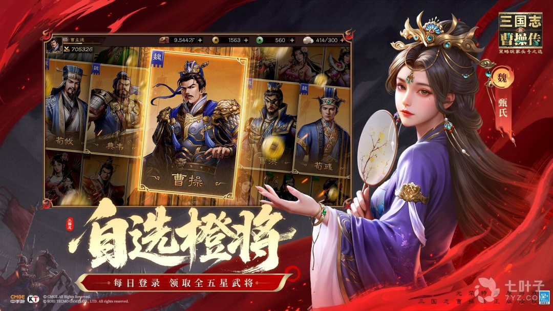 新三国志曹操传!登录十连抽,7天送极品阵容,登录送5星武将!