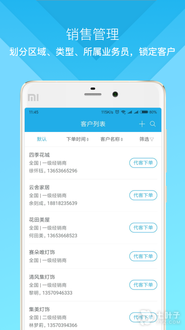 可按下单时间、客户名称、默认等信息快速筛选客户;