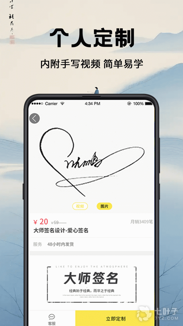 【订制签名】 *中国签名设计行业协会首席设计师亲笔设计。 *众多明星、CEO的签名选择。 *优先时间设计完成;VIP服务。 *量身打造;根据需要。 *高清教程,步骤解析;随时随地临摹练习,只为您写的一手好签名。
