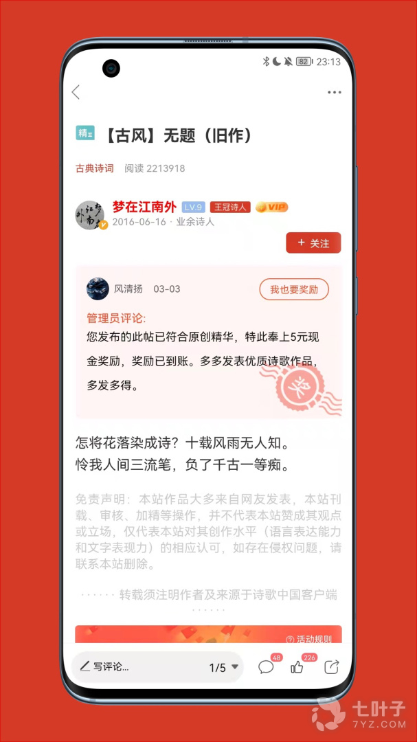 1、这里可以欣赏到各种原创诗歌诗词,以诗会友,找到志同道合的诗友,一起吟诗作对,打造一个特别的诗歌圈
