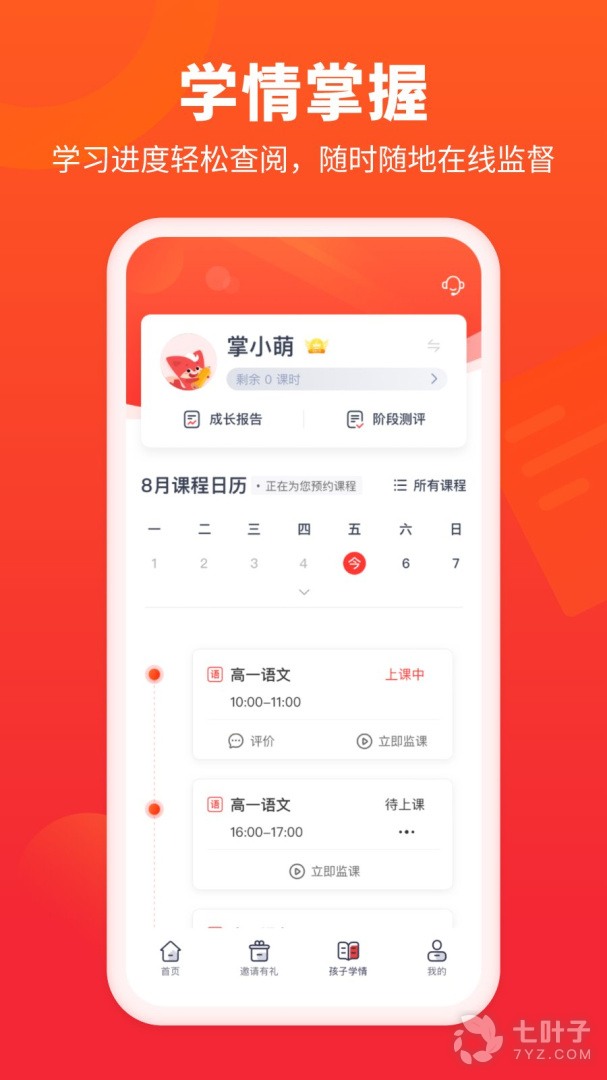 3、学情管理监督孩子的学习、观看孩子学习报告,助家长更了解孩子的学期情况