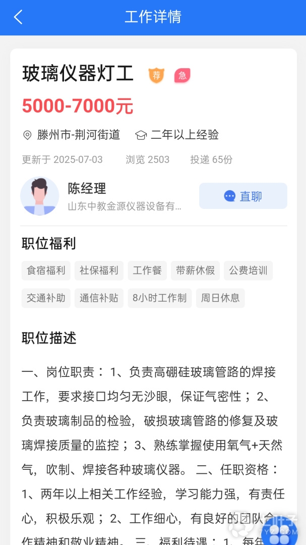 1、聊天功能,可以支持你与招聘的公司进行交流,互相发送消息,方便进行预约面试