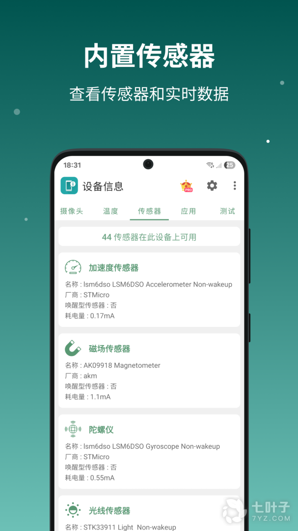 - 传感器信息(加速度,陀螺仪,计步器,磁力,步进检测器,重力,运动,旋转,倾斜,手势,唤醒等)