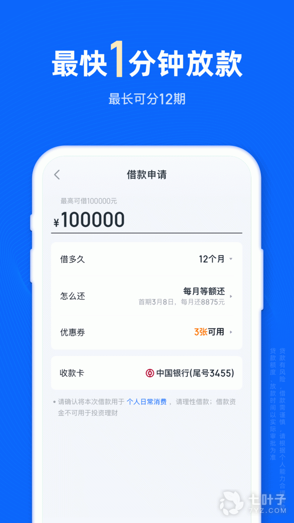 2、在这款软件中用户可以进行极速贷款办理服务,操作步骤也是非常的简单便捷,软件中的用户服务质量非常的高,全程都会知道用户进行操作,专业客服24小时在线,有问题可以随时寻找客服咨询