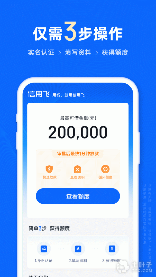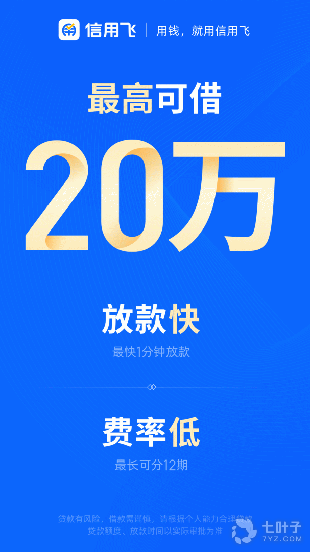 1、马上申请马上下款,信用飞主要是根据信用来评估,信用越高额度越高