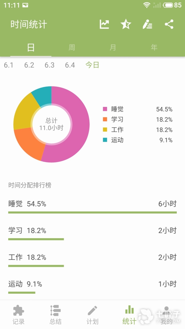 5、实时的记录你每天的规划和用时情况,让你每天都井井有条