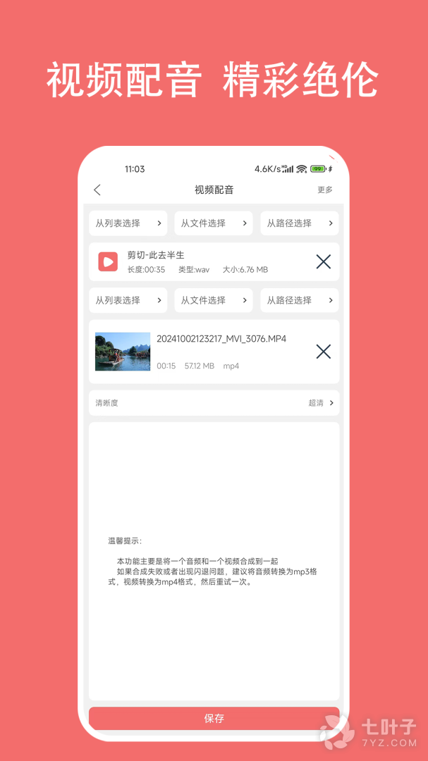 1、支持多种主流音频格式转换,并且支持设置采样率和比特率,目前支持的格式有:mp3、aac、wav、amr、flac、wma