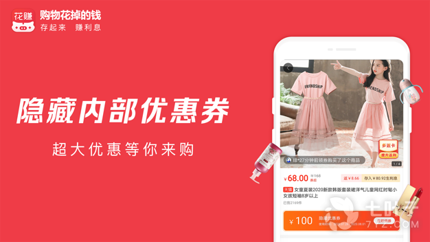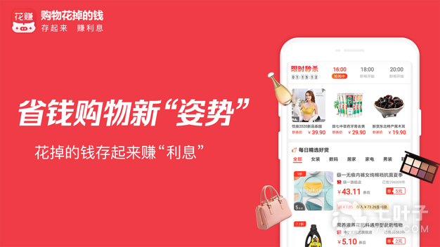 3、花赚不仅提供淘宝天猫购物优惠券,还可以把用户在淘宝天猫购物花掉的钱存起来赚利息,帮助用户在花钱同时又在赚钱,方便实惠,非常实用