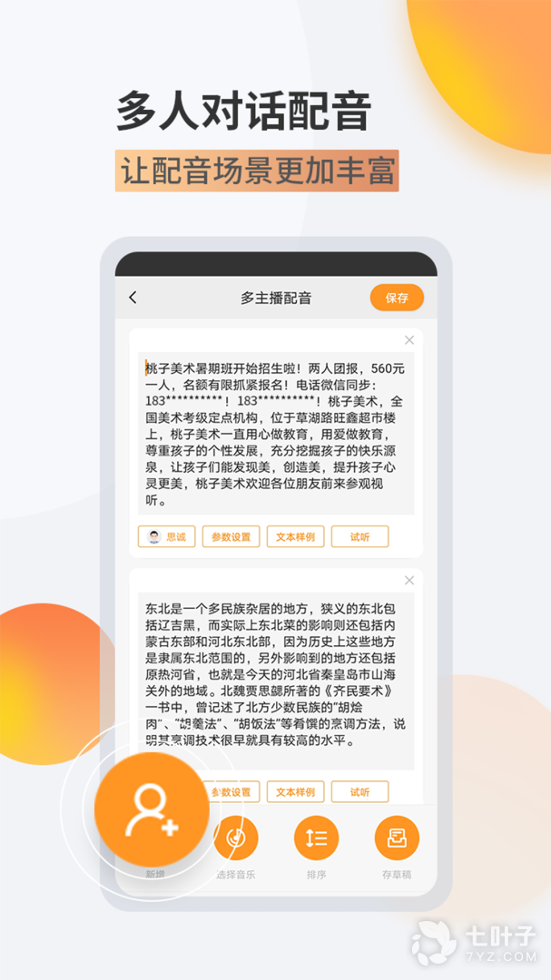 1、拥有丰富的音色选择,支持多种语言切换,还能自己制作各种音效,适用于地摊叫卖、广告宣传、短视频配音等诸多场合使用