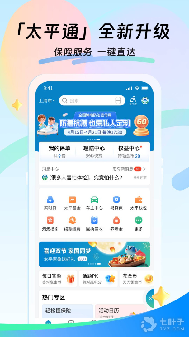 “太平通”APP为中国太平保险集团官方线上客户服务平台,为客户提供一站式、全场景的综合金融客户服务。