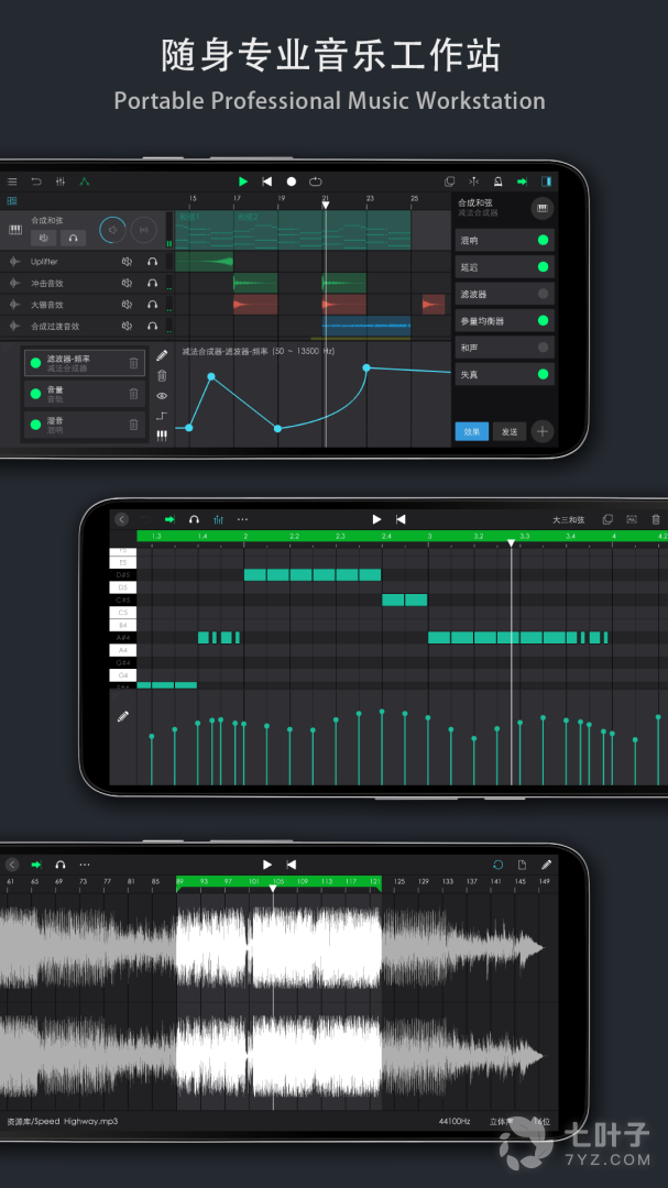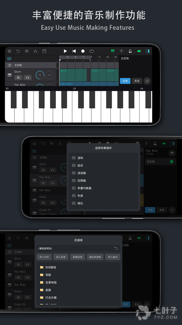 1、在手机中就可以随时的创作音乐,音乐制作工坊有很多专业的音色创造工具,音频和音色处理,发挥你的灵感自由的进行编辑